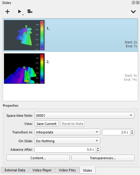 You can also change the presentation options, by default Fledermaus will interpolate between the Slides but you can change that to have no interpolation
