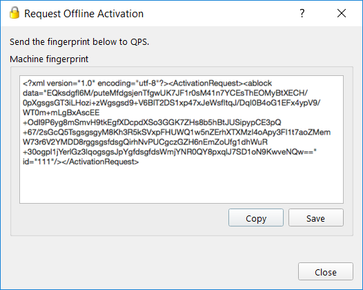 QPS will then provide an XML formatted activation string that can be applied using the Apply Response... option of the Offline Activation button.