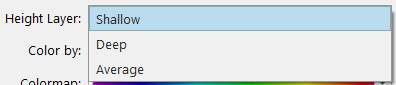 The Height Layer popup menu lets you select which grid height property you want to render for Grids that contain multiple surface properties. For example, if you have a dynamic grid you can select from the Shallow, Average, Deep and, if present, the CUBE grid.