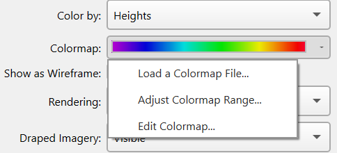 In addition to loading a new colormap file you can also adjust how the color map is applied to the surface. You can also choose to edit and/or create new colormaps via the Edit Colormap option.