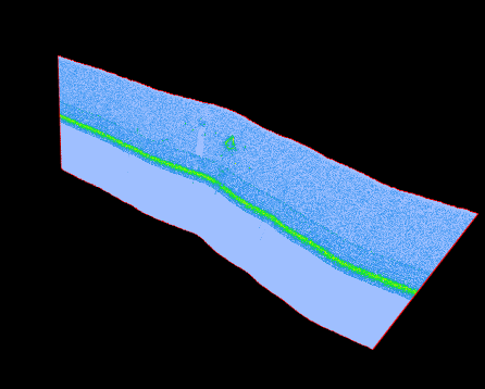 Vertical curtains are images with a fixed vertical Z range for the data. Each column of pixels is rendered at a given geospatial position. Thus the vertical imagery will follow the path given allowing the imagery to weave in and out according to the locations specified. A good example where this object type is useful is in the visualization of processed seismic or midwater imagery where the image follows the track of the ship that collected it.
