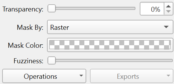 The Mask By option includes None, Color, and Raster options. When None is selected all the image's pixels are displayed. When Raster is selected any pixels in the image whose alpha value is zero will not be rendered allowing one to mask out portions of the image. An alpha value of zero means to mask (hide) the pixel, whereas the default 255 value means show the pixel. The final Color option allows for some simple dynamic masking where you can select a color and have any part of the image with the same color have its pixel hidden. This is done dynamically and does not actually modify the imagery data. For example you may have a chart which normally has a white background. The mask by Color makes it trivial to select the white background and remove it from the image displayed. To set the mask color click on the Mask Color option below the Mask By control. This will bring up a dialog to select the color and a control to pick the color from the scene if desired.