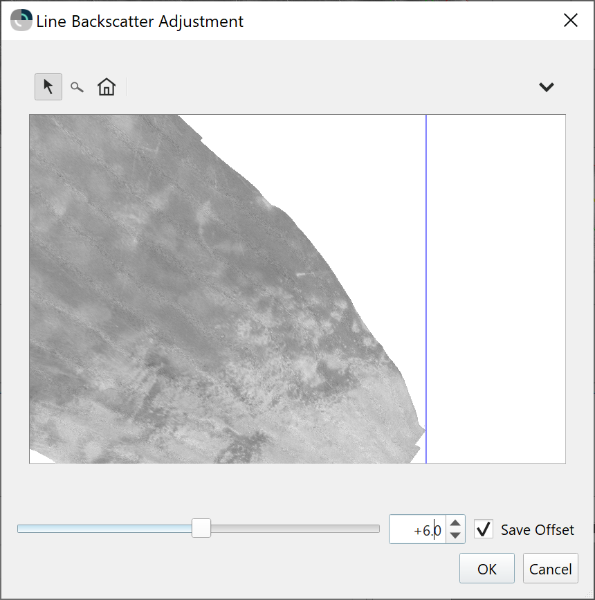 Once satisfied with the results, the dB offsets are saved along side each line in the project folder and they are used by default in the initial mosaic that existed prior to launching the tool. They are also used in any subsequent creation of new mosaics. The user can adjust the offsets individually after this by using the existing "Line Brightness Tool", which has been renamed to "Line Backscatter Adjustment" tool. The renaming was done to clarify the use of the tool, especially now with the arrival of the Cascading Backscatter Normalization Tool. The dB offset that is calculated with the Line Backscatter Adjustment tool is now saved so that the offset is re-applied with new mosaics. Previously, it was only applied to the existing mosaic and would have had to be re-calculated anytime a new mosaic was created. The image below shows the new option to save the offset, it is enabled by default.