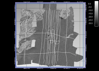 The Map View of FMGT shown in the Map View Panel figure is very similar in nature to the DMagic map view or the Fledermaus Plan View mode. The map view will display all visual layers of your project that are currently active and all track lines for the loaded lines that are active.