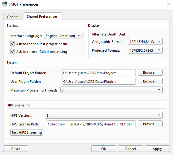 When the HIPS Version is set to 9, the HIPS License Path field allows you to specify the HIPS license file, which is typically located in the System folder of the CARIS installation path.