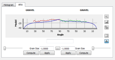The user can use the grain size slider to try to fit the modeling curve to the observed data or click on the Compute button to have FMGT do the modeling automatically. To preserve the results, simply click on the Apply button for the side of the patch that was changed.