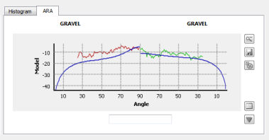 The ARA Tab contains the ARA Control shown in the ARA Control figure. It displays the backscatter plots for the currently selected patch. If the user has run ARA Inversion, the model curve (in blue) will represent the current class for each side of the patch. If the user has not run ARA Inversion, they can use the Quick Modeling tools by clicking on the show/hide tool button