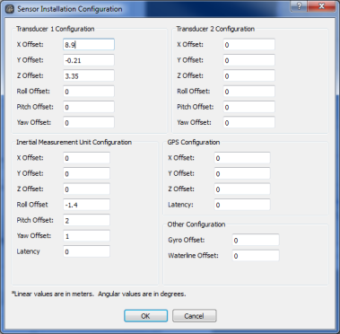The Sensor Configuration Dialog shown in the Sensor Configuration figure below displays the project sensor configuration. These values are extracted from the first added file and are saved to the project XML file. The user can visualize the values of the sensor configuration here or in the project's XML file.