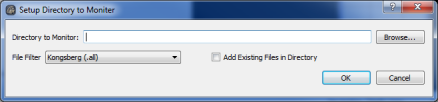 The Directory Monitoring Dialog show in the Directory Monitoring figure below allows FMGT to automatically add files to a defined project. This capability is normally reserved for use during live acquisition. When a sonar file gets added to the specified directory, FMGT will automatically add it to the project, index it, and compute the coverage.
