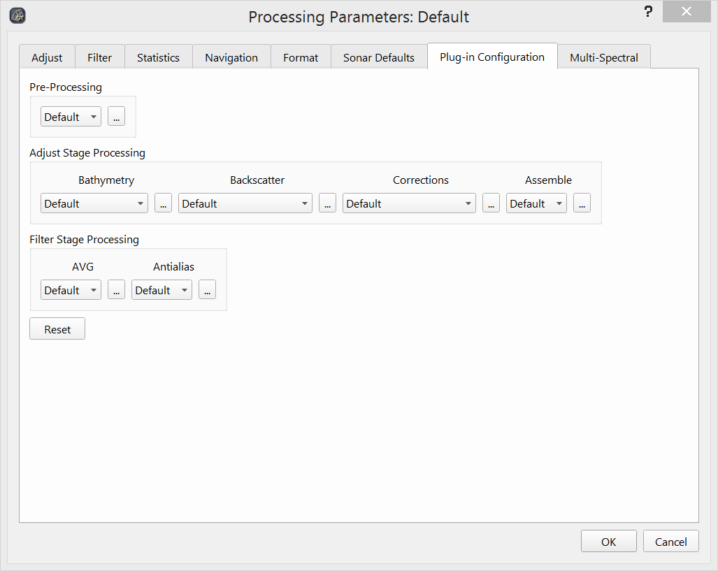 Processing Dialog - Sonar Defaults
