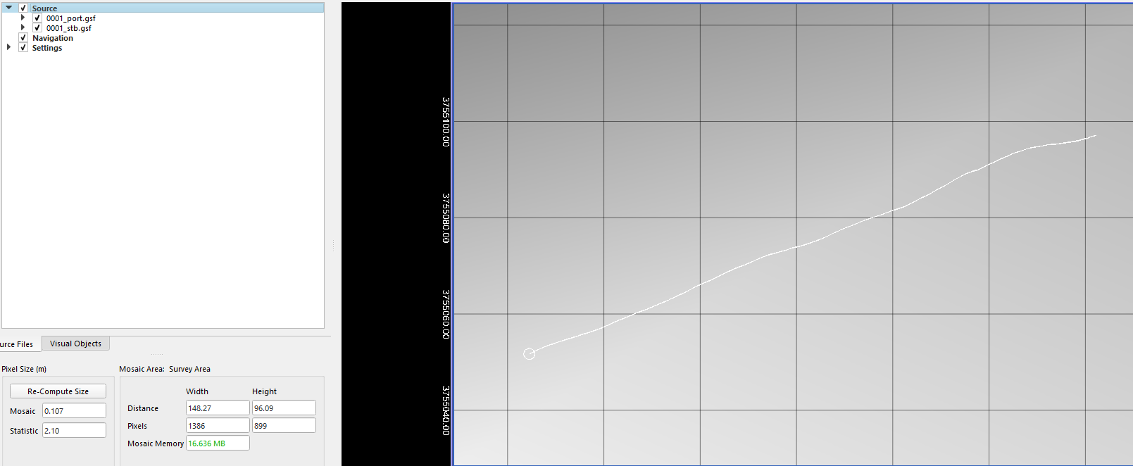 Create a new project and import two files, one for each head of one survey line, made with a dual headed system. Since the adjustment for bias is between two heads, the data from each head must be evaluated individually.