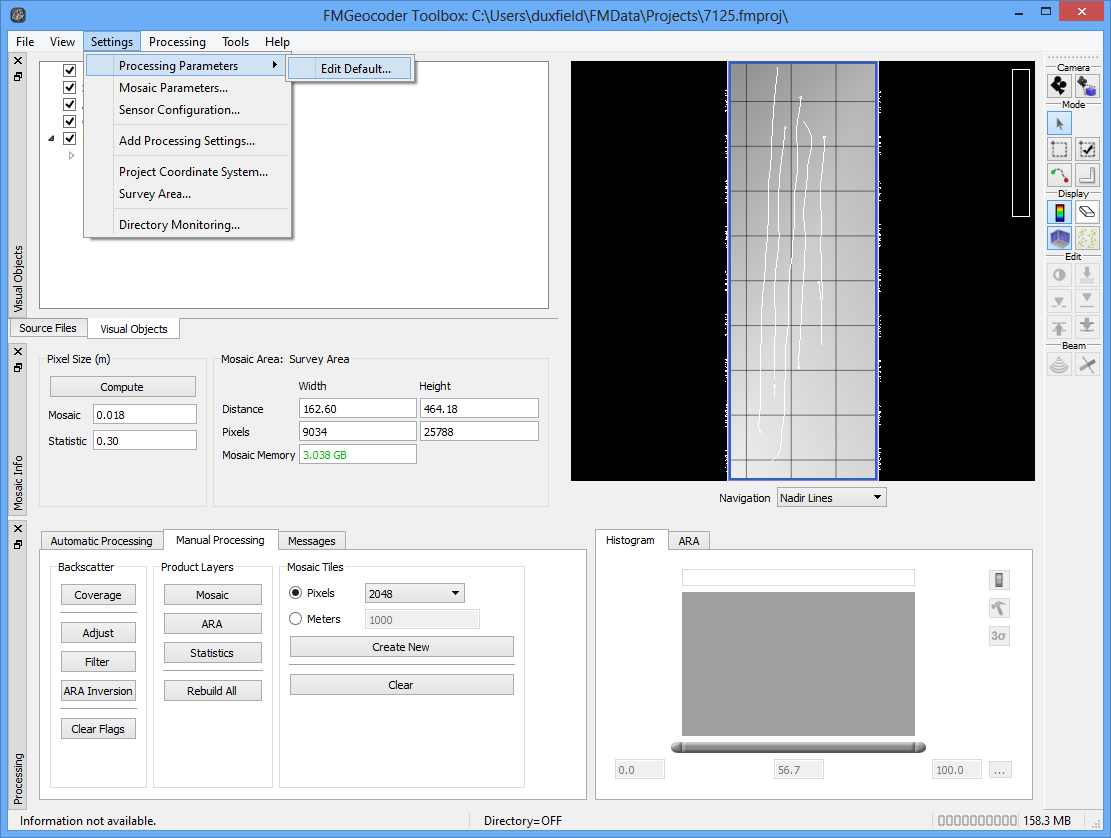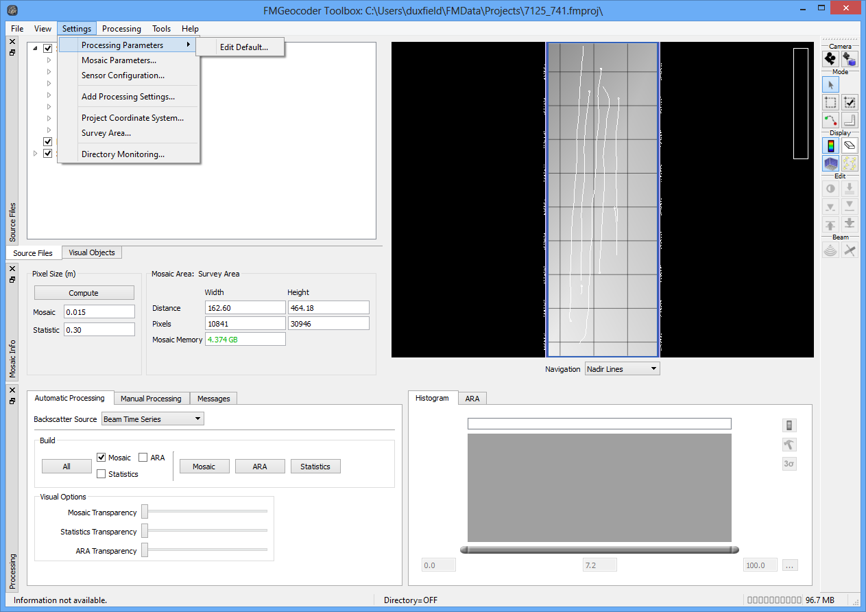 Open your FMGT project, or create a new project. If you haven't done so already, use File > Add Source/Paired Files to add your Reson 7125 or 7111 backscatter imagery and corrected bathymetry files to the project.