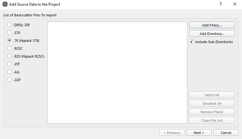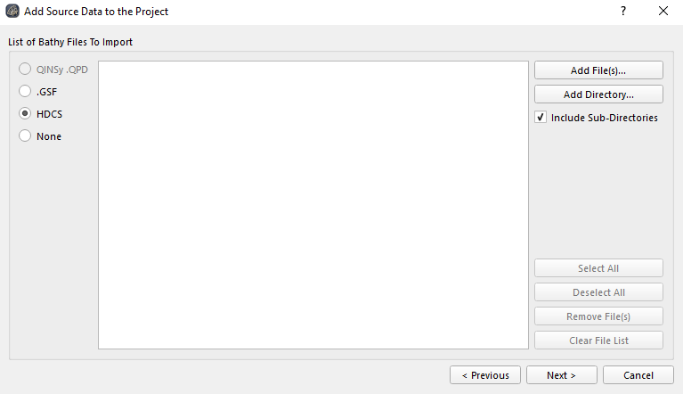 Once you have selected your backscatter files, FMGT will then ask you to specify which bathymetric files you would like to bring in. This is where you will select your HDCS files.