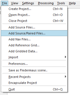 To import your data, access the 'Add Source/Paired Files' from the File drop down menu: