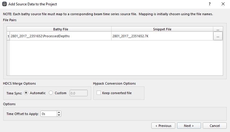 The files to be paired must have the same name to be paired automatically. For example, in the image above the folder that the bathy file is in has the same name as the .7K Snippet file, so FMGT was able to match them automatically.
