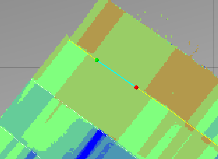 Next, you will want to select the line you wish to run the tool on, and choose a short segment to select (ideally a relatively homogeneous area). To do this use the left click to start the line (green dot), and right click to end the line (red dot).