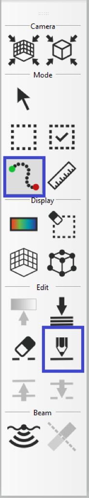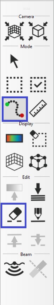 Figure 6a and b. The Cut segment icon (Eraser) and the add segment icon (Pencil).