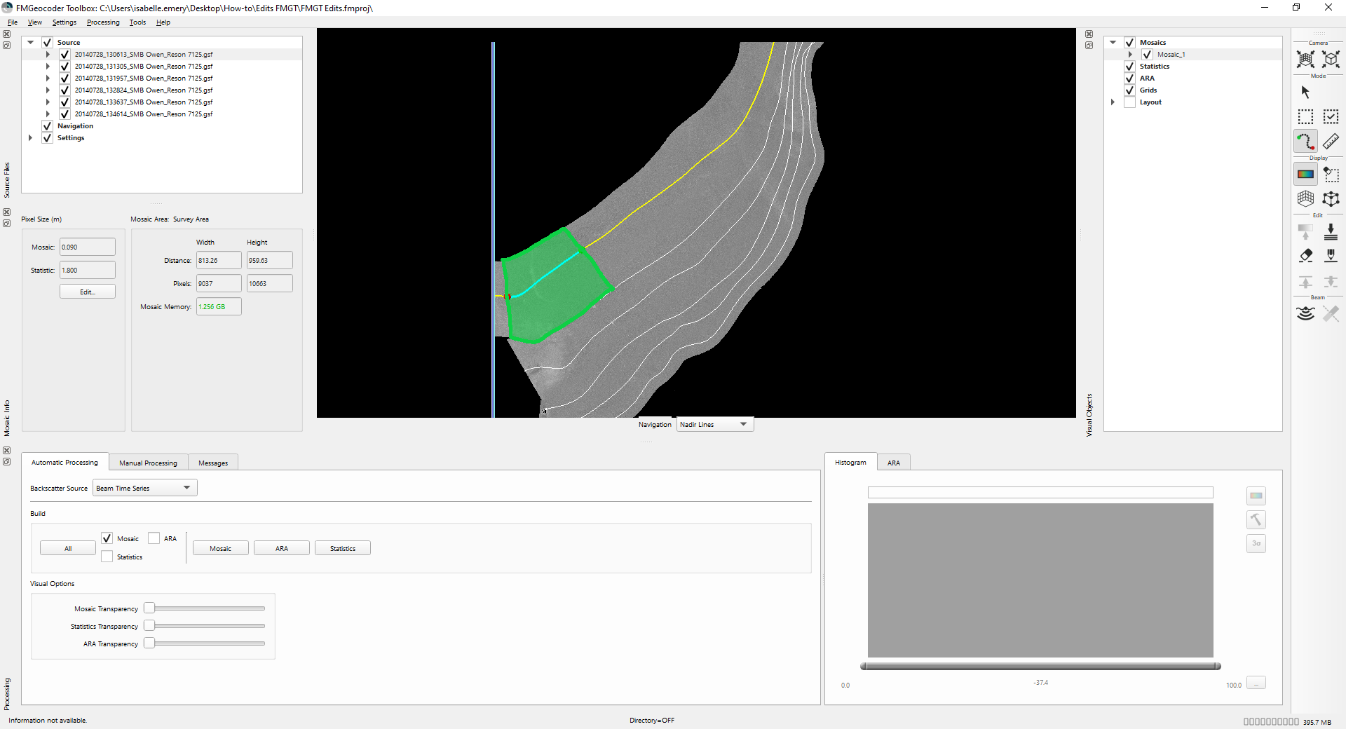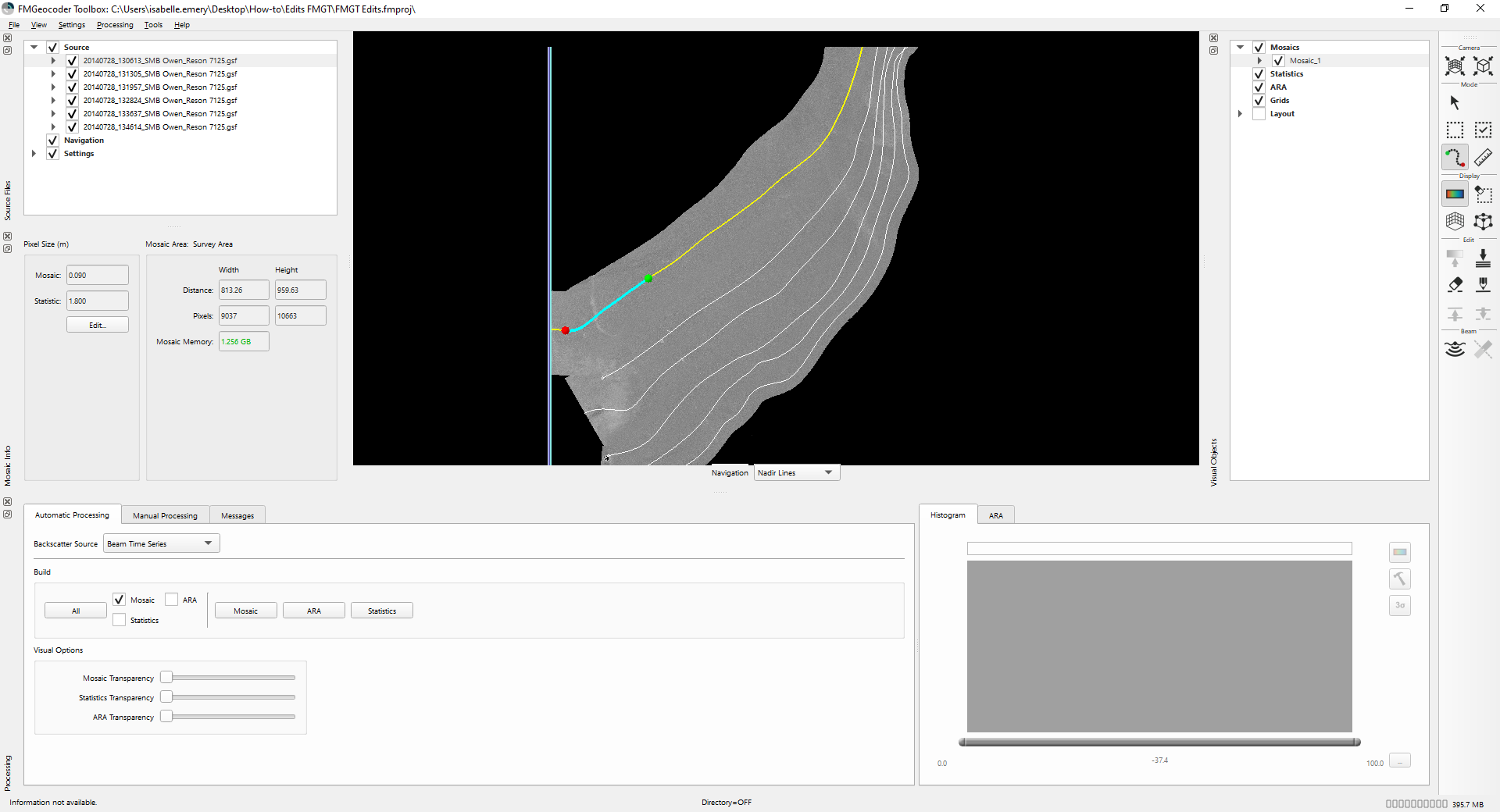 This How-to will walk you through the import of a Static Surface from Qimera to limit the extent of a mosaic and use the Edit Segment tool in FMGT to remove sections of a mosaic.