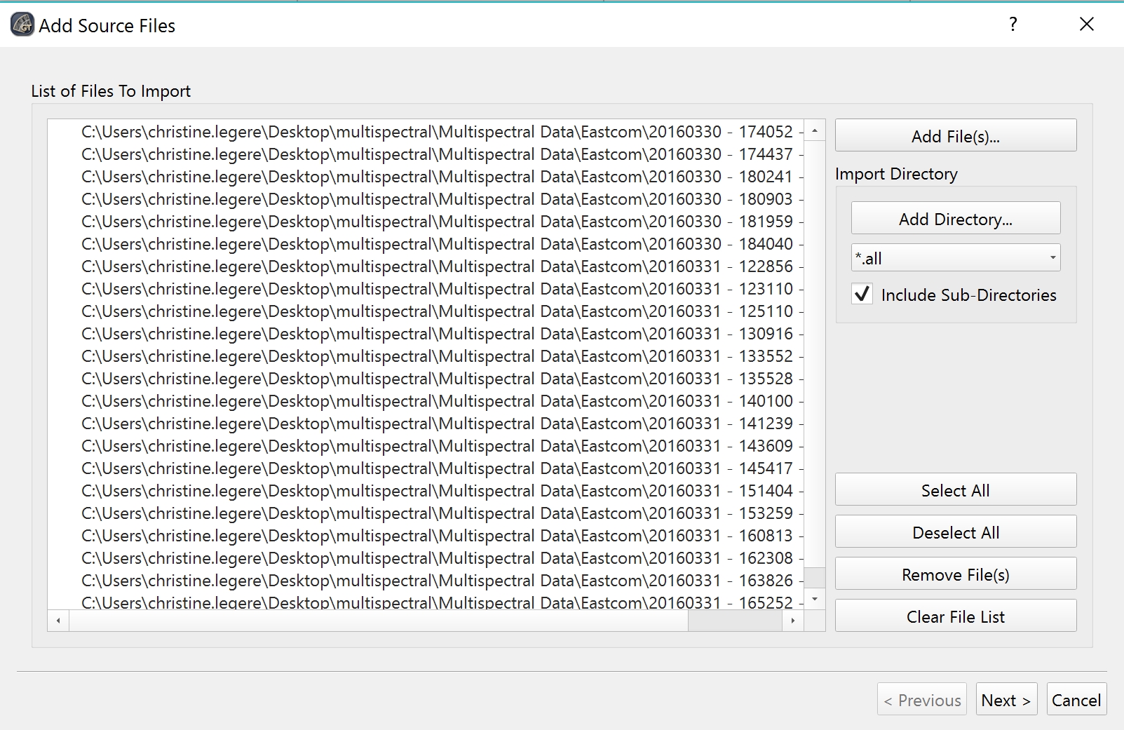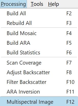 FMGT has the capability to work with multi-spectral data. This is a guided workflow documentation describing how to process multi-spectral data in order to create mosaics at different frequencies.