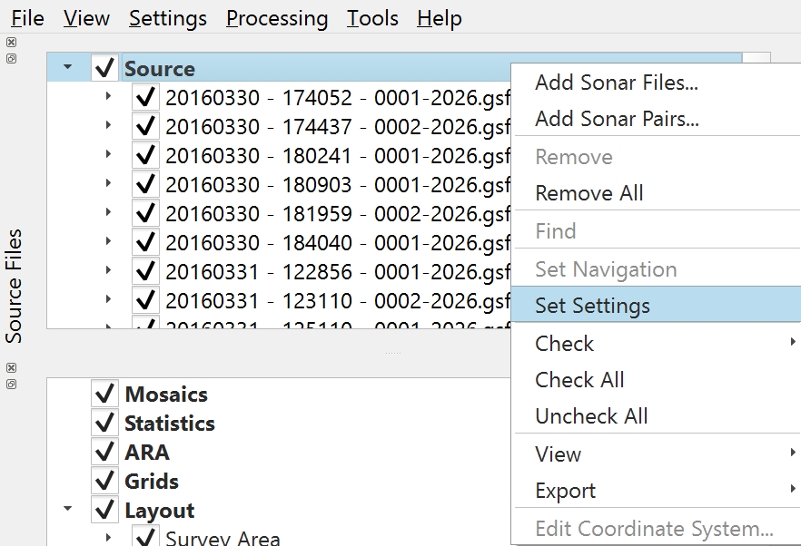 A) Under the Source files right click with your mouse and click Set Settings. Choose the frequency you wish to create the mosaic with.