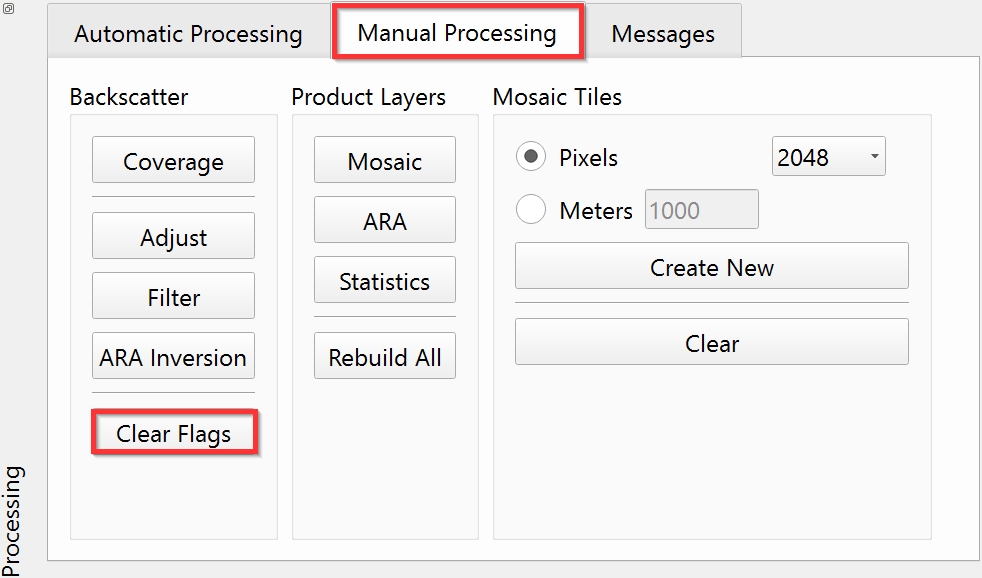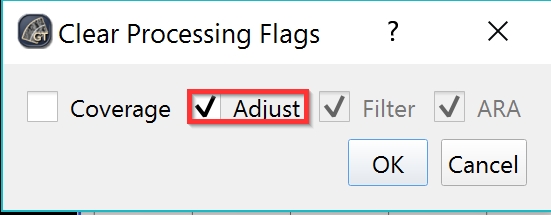 For earlier versions than 7.7.6, you will need to manually clear the processing flags for the files after changing your processing settings. To do this, go the Manual Processing Tab and click Clear Flags, check the Adjust option and hit OK. Versions later than and including 7.7.6 will clear the processing flags for you when you change the processing settings.