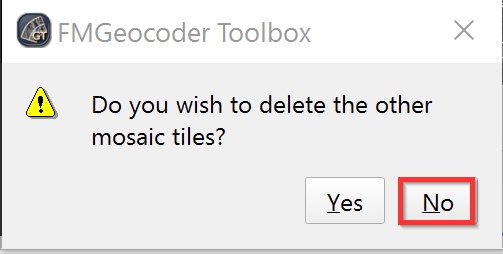 D) To create another Mosaic at a different frequency you will be required to change the processing settings to the set for the next desired frequency1. Repeat steps A) through C) for each frequency that you wish to make a mosaic from. You will be prompted each time, Do you wish to delete the other mosaic tiles, choose No.