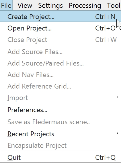 To create a project in FMGT from the File menu click on Create Project. You will then be asked to give the project a name.
