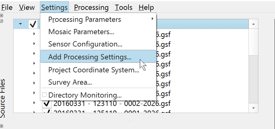 A) From the Settings menu click Add Processing Settings...and enter a name.