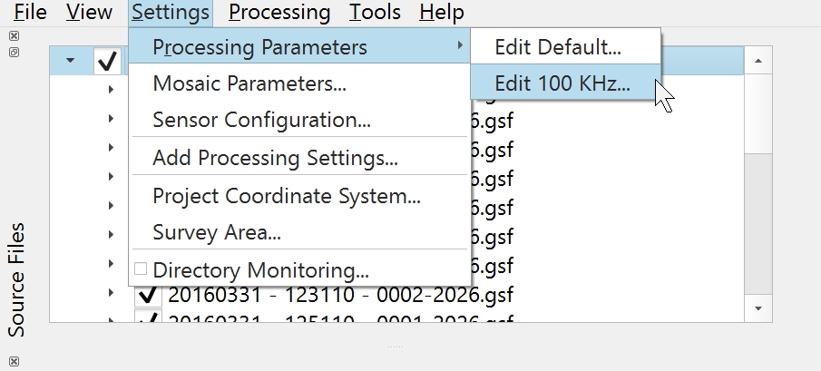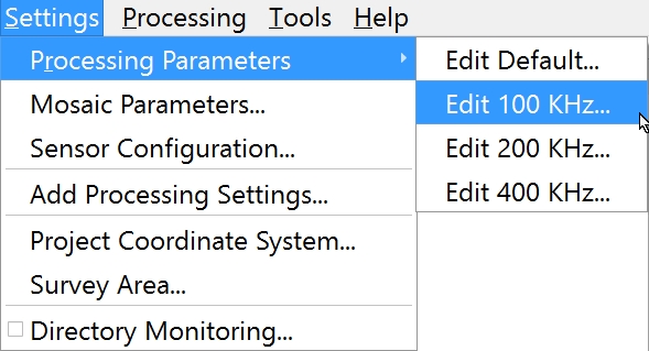 B) You will now see the new setting under Settings Processing Parameters menu. Repeat Step A for each frequency you wish to create a mosaic