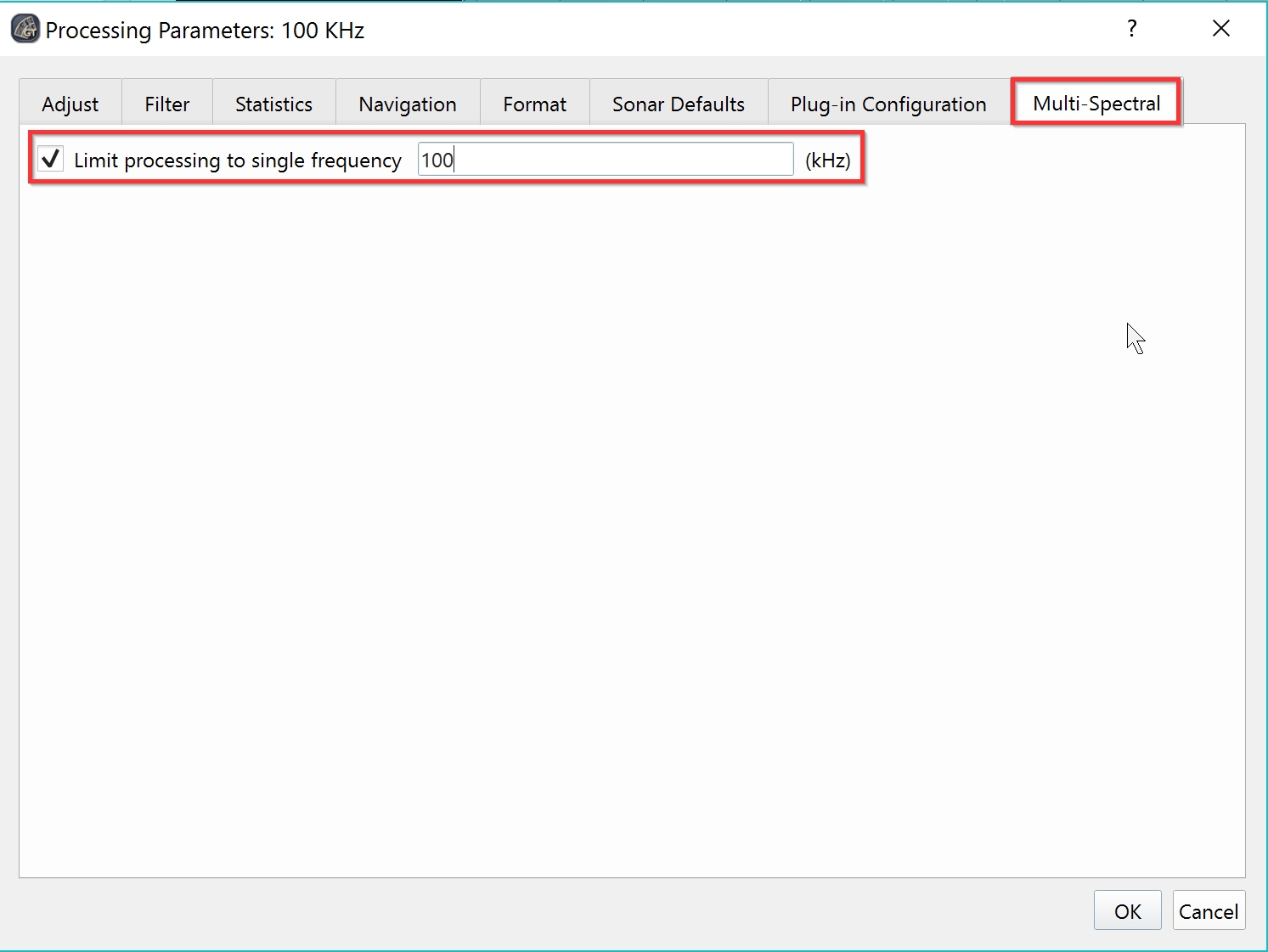 C) From the Multi-Spectral tab choose Limit processing to single frequency and enter the appropriate frequency and hit okay.