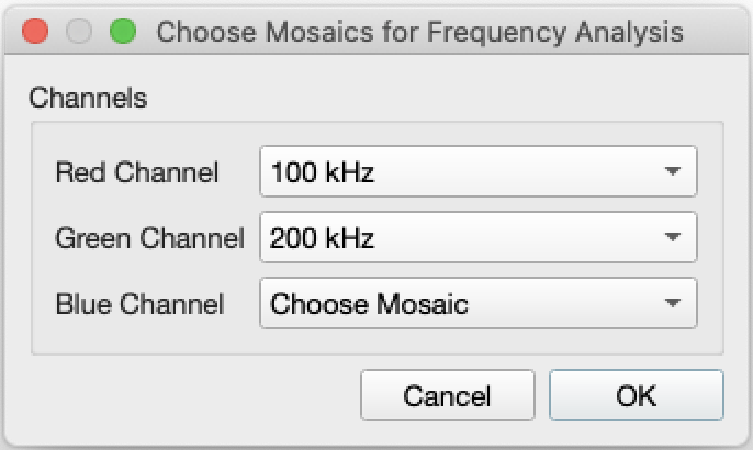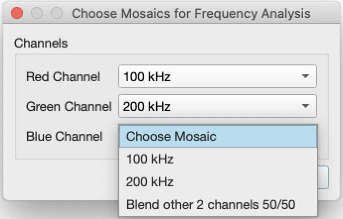 B) Choose Mosaics for Frequency Analysis will allow you to chose which colour will be associated with a specific frequency by using the drop down menu.