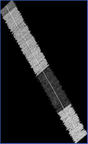 The changes are that the AVG will now consider a larger subset of angles than stated above. See dotted lines in the lower plot in Figure 2, which shows the increased angular range of data that FMGT will consider in the tabulation of the mean seafloor response level for the purposes of normalization. The increase in the examined angular range is only done for cases where less than 50% of the nominal angular range provides data, i.e. the angular sector is less than +/-45 degrees. In this case when there is not enough data in the original angular range, the angular range is expanded to include data up to 70 degree grazing angle (70 is closer to nadir than 60). The result is now that depicted in the right image of Figure 2.