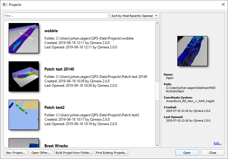 Select 'Build Project from Folder' and Qinsy will open the Windows File Explorer where it is possible to select the folder that contains the data