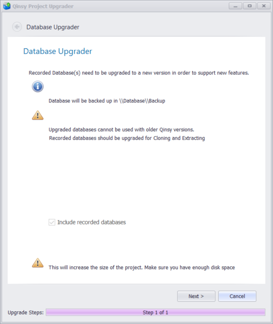 If the folder only contains recorded databases, Qinsy will show the 'Database Upgrader'