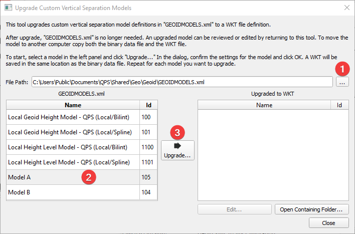 The Geoid Model Migration Tool is used to update user created geoid models so they can be used in Qinsy 9.