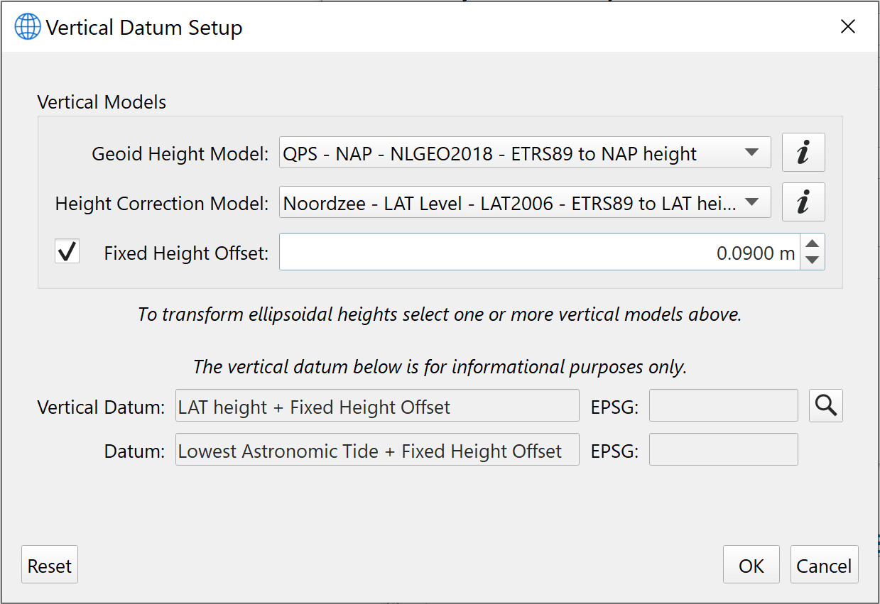 This dialog is used to set up a vertical coordinate system which can contain any combination of an absolute height model, a relative height model and a manual/fixed offset.