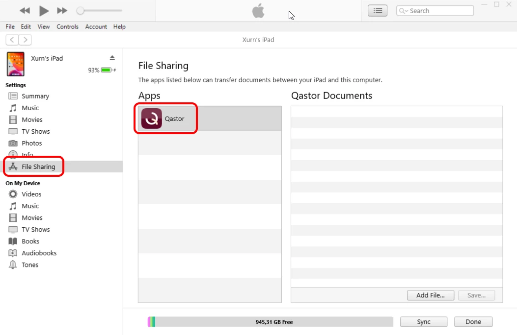 Follow the next steps to upload the QNC files from a Windows laptop to an iOS device with iTunes: