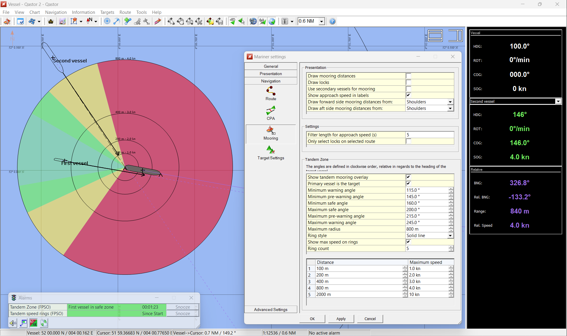 An output message of the tandem mooring speed alarm.