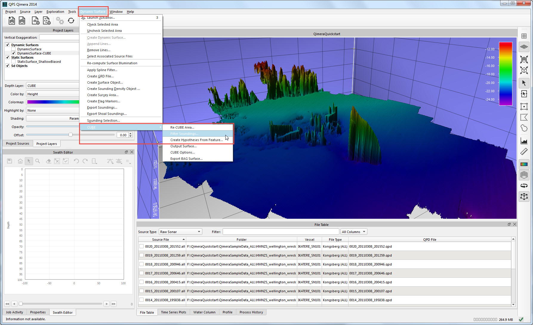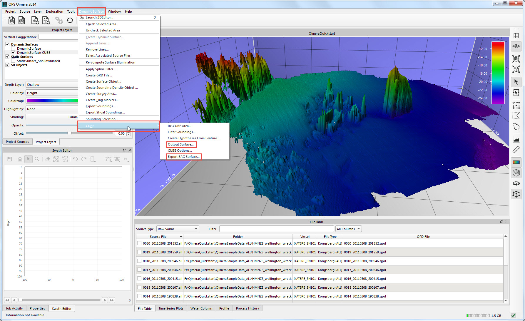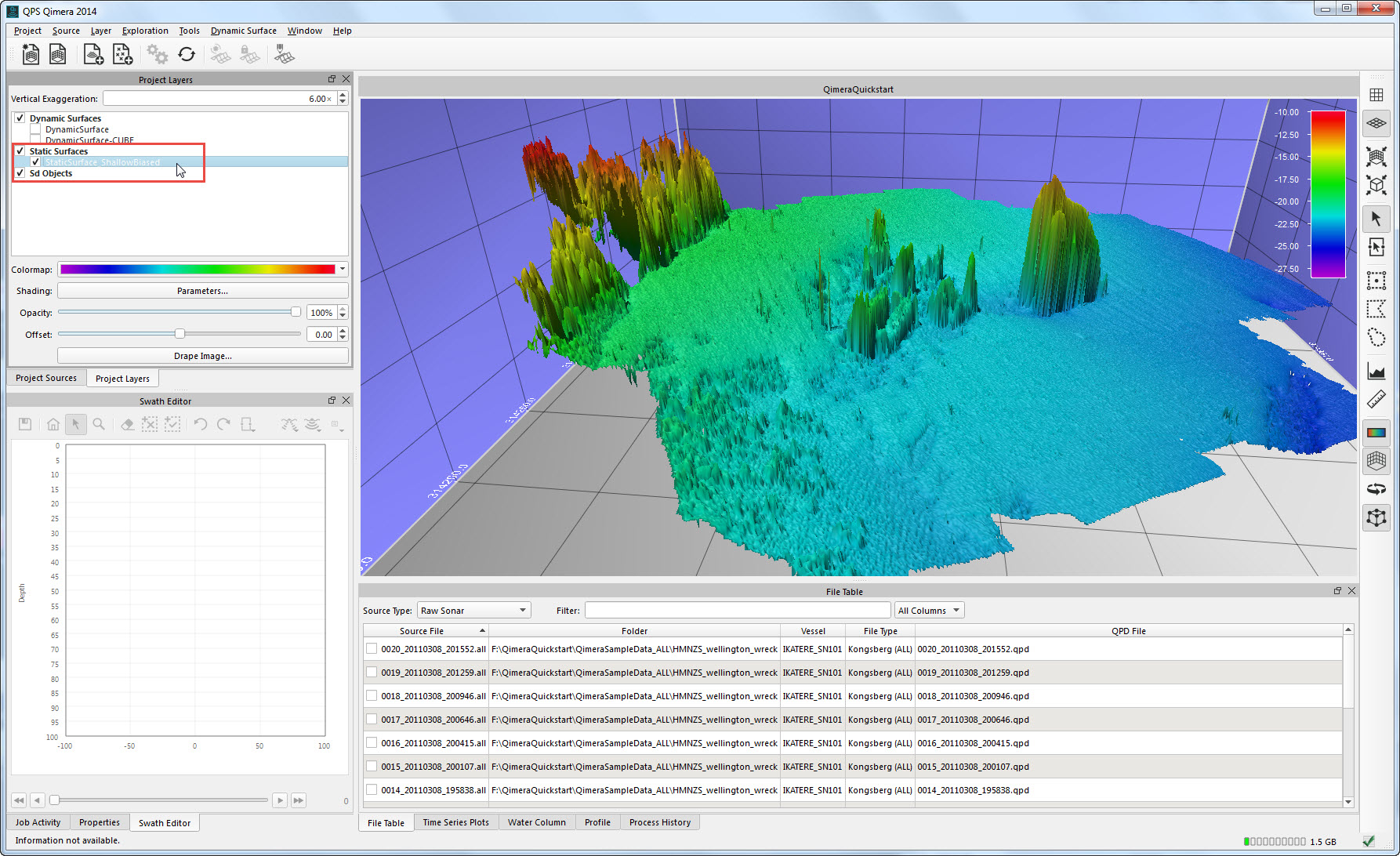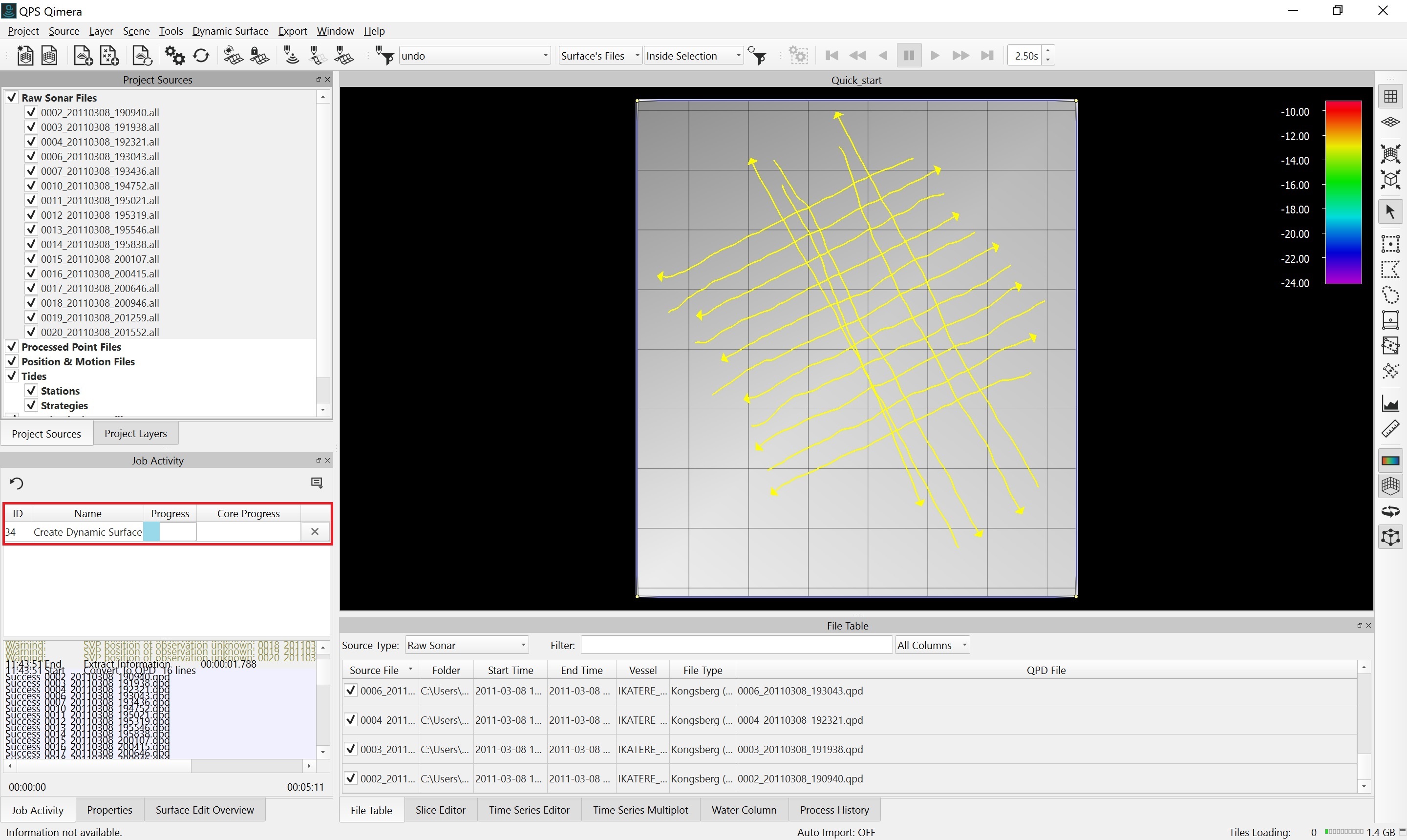 This Quickstart demonstrates a straightforward workflow with one of the more comprehensive data types, Kongsberg .ALL files.