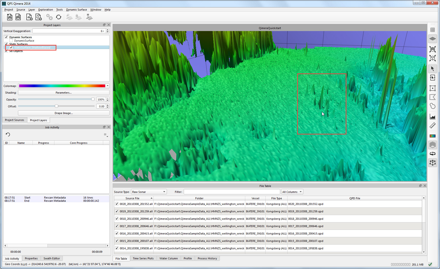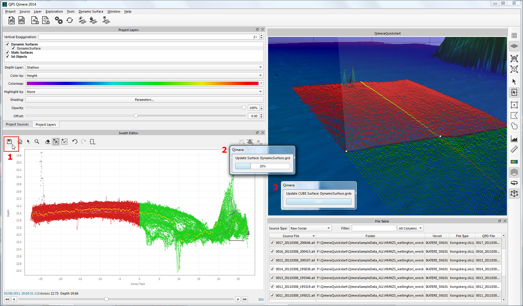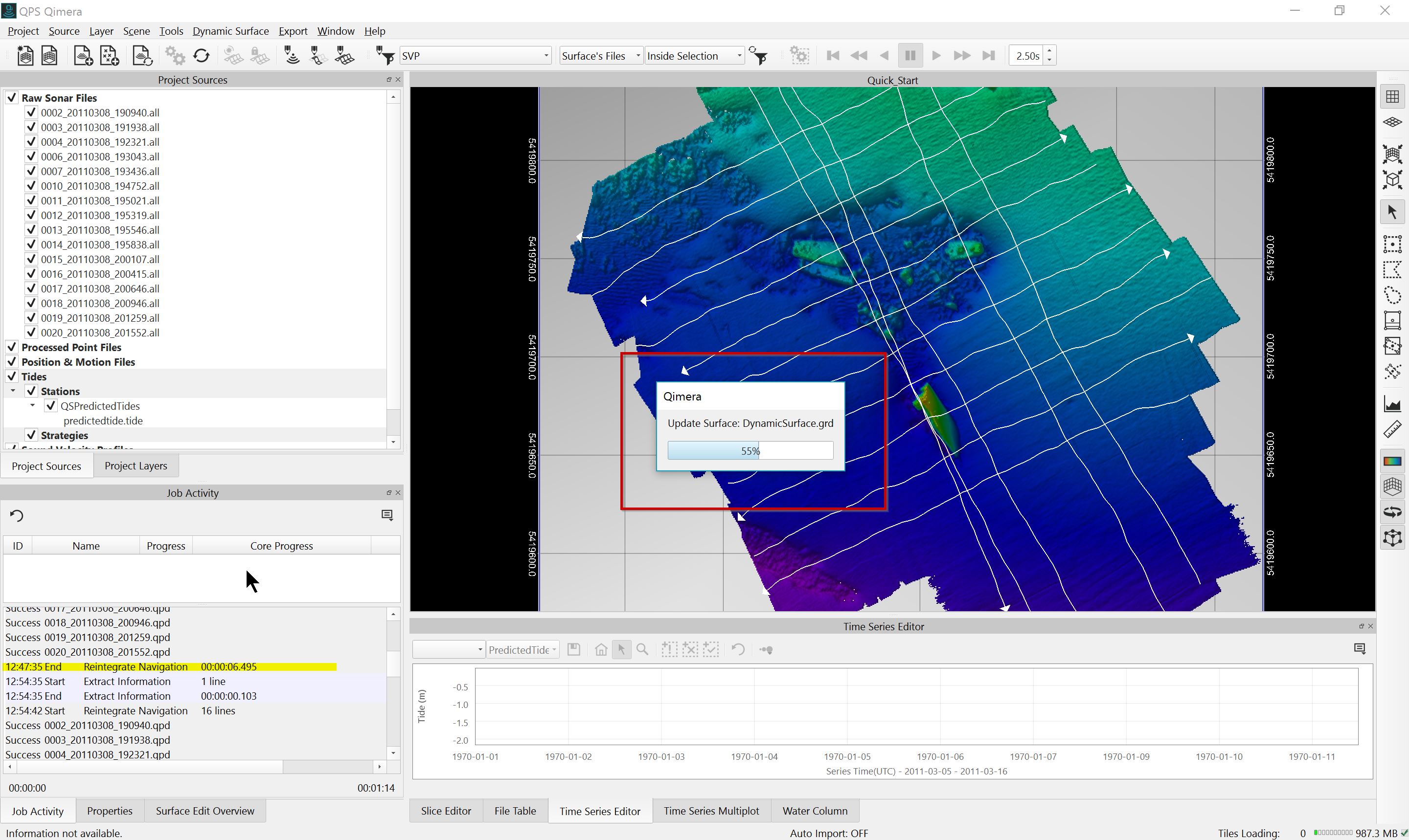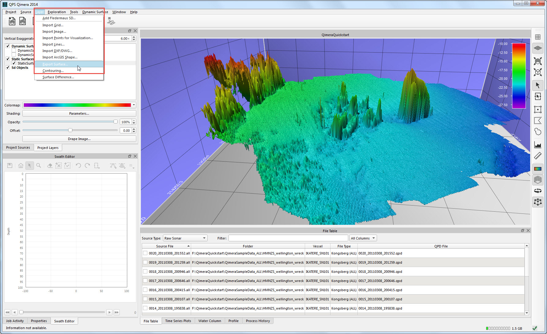 This Quickstart demonstrates a straightforward workflow with one of the more comprehensive data types, Kongsberg .ALL files.