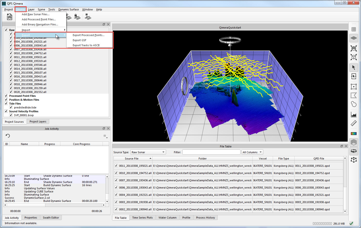 Finally, there are additional export options under the Source Menu for exporting processed point information and tracklines.
