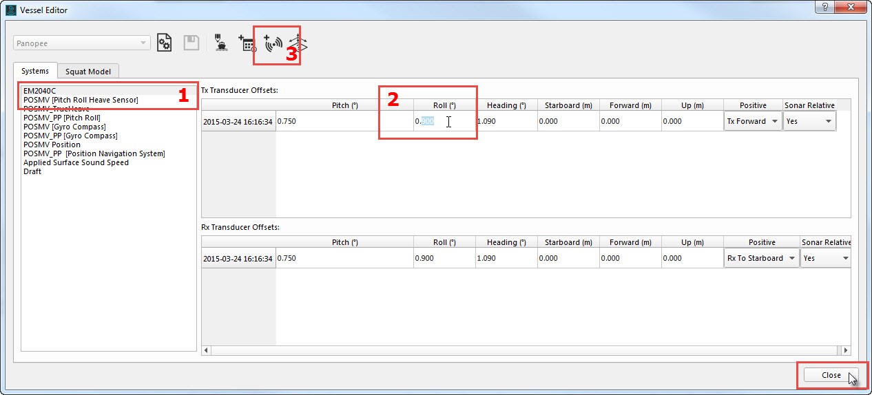 Click Yes to launch the Vessel Editor. Select the system you want to edit form the Systems tab (1). Double click on any of the boxes (2) to make the values editable, then add your offset values.
