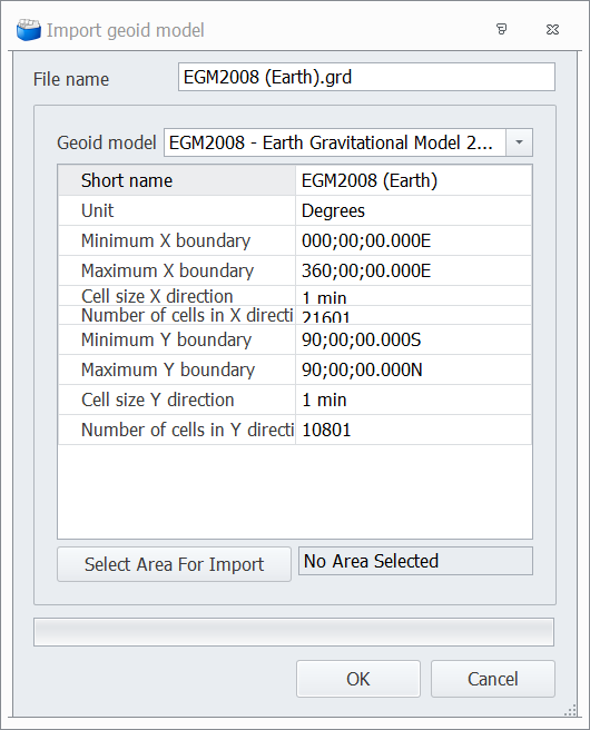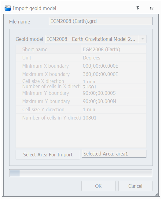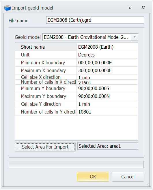 - Click on Select Area for Import and choose the area file that you created in step 1