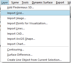 - You can now go to Qimera and import the .grd file that has been created (Layer → Import Grid, specify QPS Grid). Alternatively, in Processing Manager, you can also export the grid as ASCII and build a new grid from that.