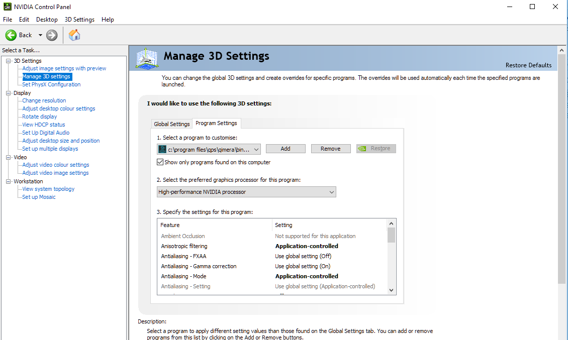 Configuring Dedicated Graphics Devices for Qimera