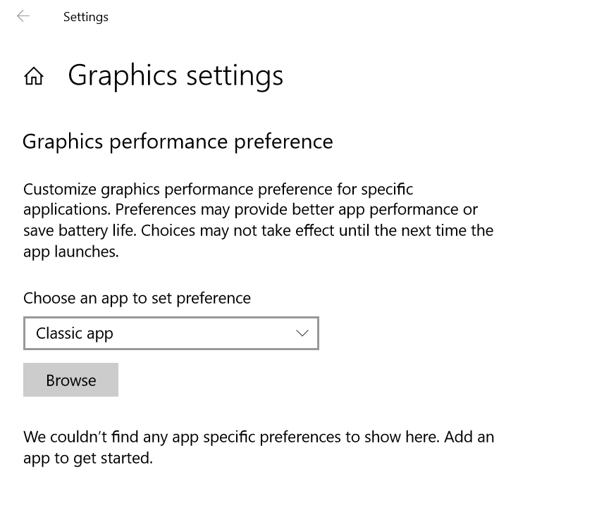 - Within the Display Settings, choose 'Graphics Settings'. You should now see something like this: