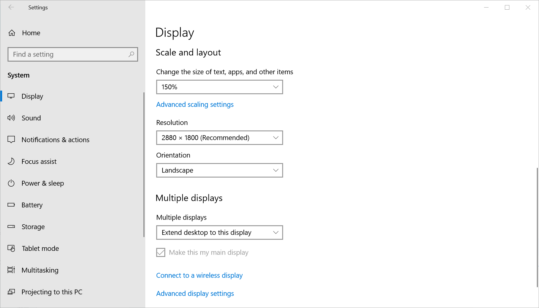 Go to Windows Display Settings. The easiest way is to press the 'Windows' button and type in Display, then hit enter. You should end up here: