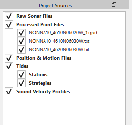 When point file data has been imported into the project, it is added under "Processed Point Files" in the Project Sources dock (see Figure 7).