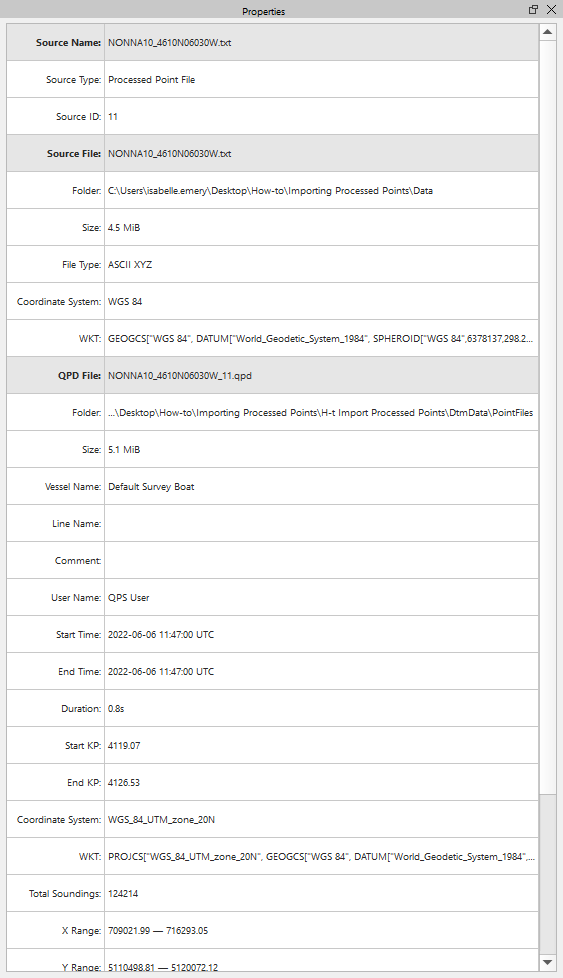 Figure 8. Properties of Processed Point Files.