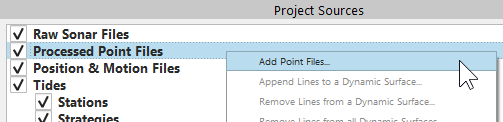 By right clicking "Processed Point Files" in the Project Sources Dock and selecting "Add Point Files" (see Figure 2c).